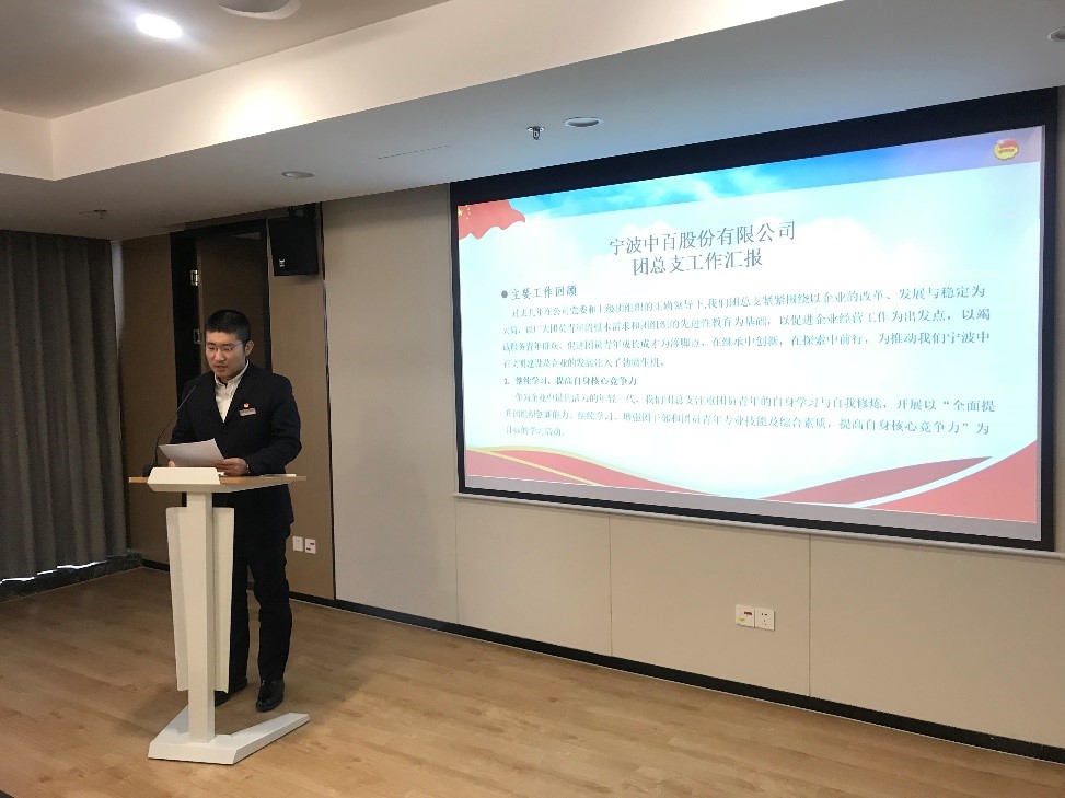 2018年11月20日,共青團(tuán)寧波中百股份有限公司總支委員會召開全體團(tuán)員大會,進(jìn)行換屆選舉。會議在莊嚴(yán)肅穆的國歌聲中正式開始,團(tuán)總支書記陳佳琦代表上屆團(tuán)總支作工作報告。