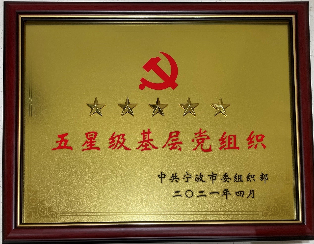 我公司黨委被中共寧波市委組織部評(píng)為“五星級(jí)基層黨組織”!